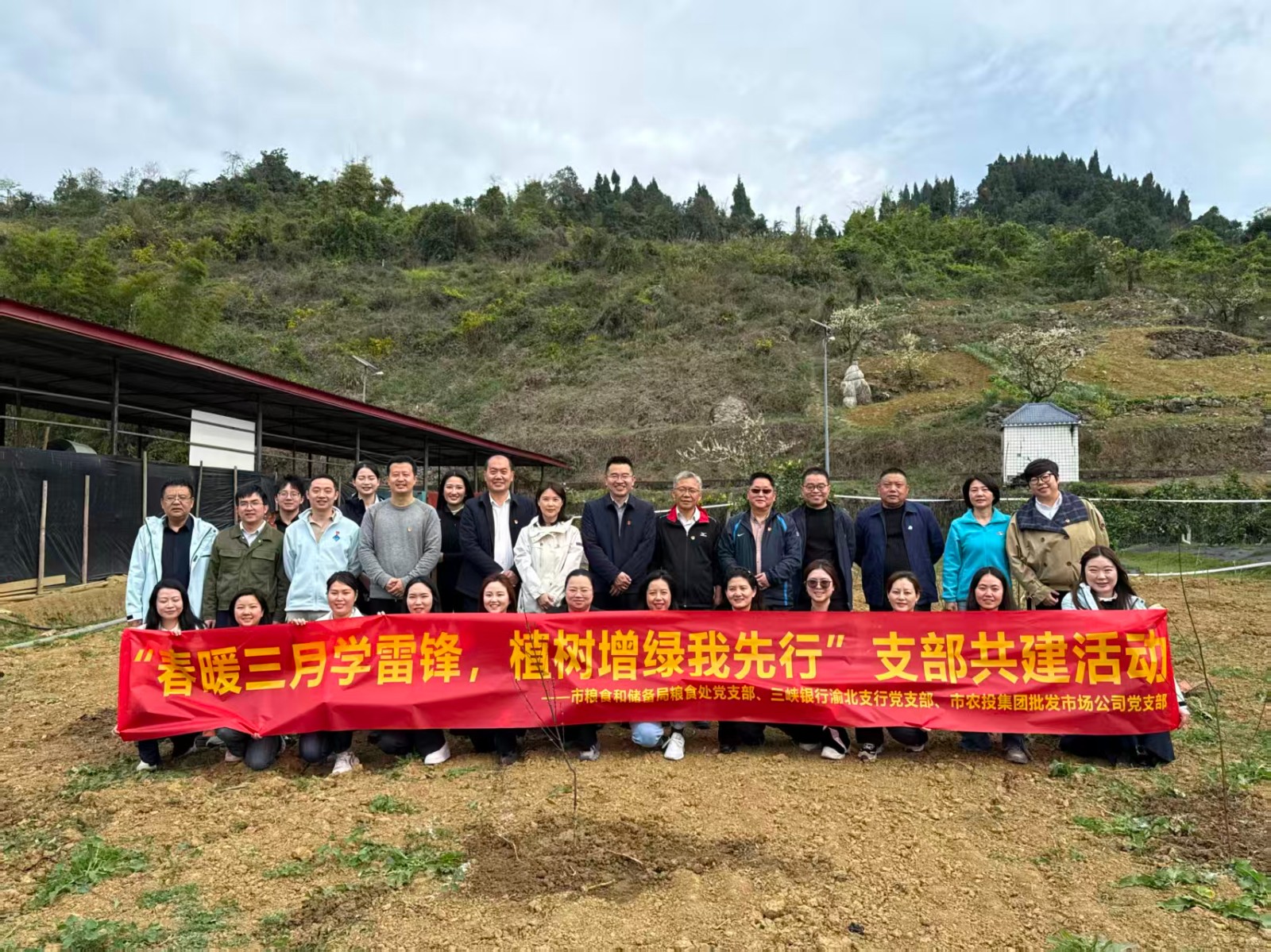 为深入贯彻落实树立和践行正确政绩观学习教育要求,推动党建与业务深度融合,促进协同发展、共筑粮食安全,3月12日,正值第48个植树节,市农投集团所属批发市场公司党支部联合市粮食和储备局粮食处党支部、三峡银行渝北支行党支部共同开展“春暖三月学雷锋,植树增绿我先行”支部共建活动,以实际行动传承雷锋精神、播撒绿色希望。